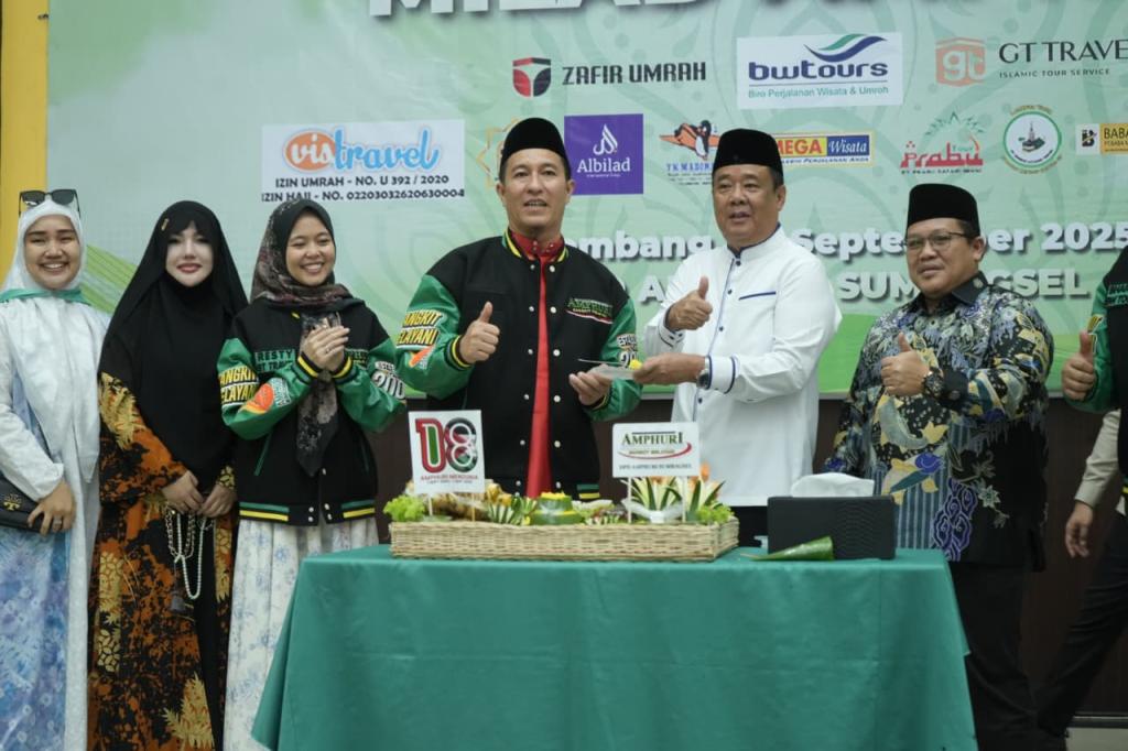 Asosiasi Muslim Penyelenggara Haji dan Umrah Republik Indonesia (AMPHURI) Sumatera Bagian Selatan (Sumbagsel) memberangkatkan 433 jamaah umrah dalam satu penerbangan langsung dari Palembang menuju Jeddah, Kamis (25/09/2025).