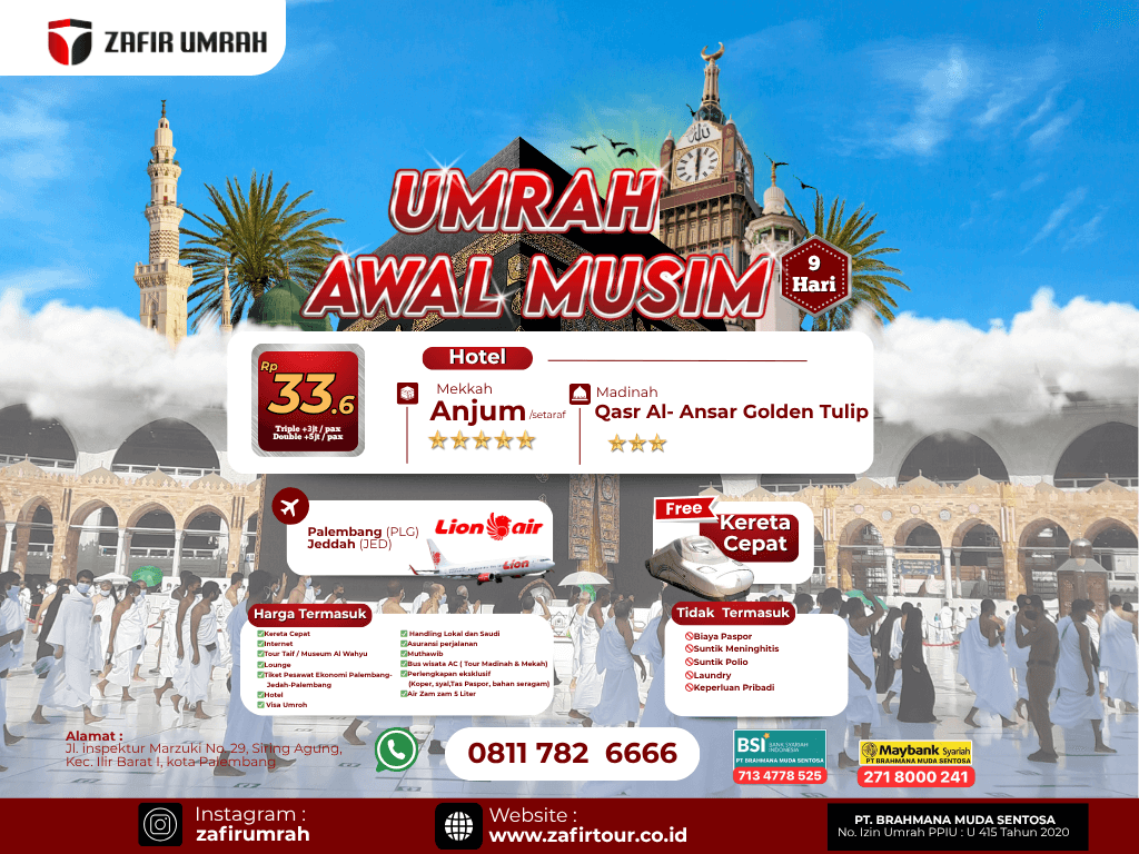 - Pelunasan Paling Lambat 2 bulan sebelum keberangkatan